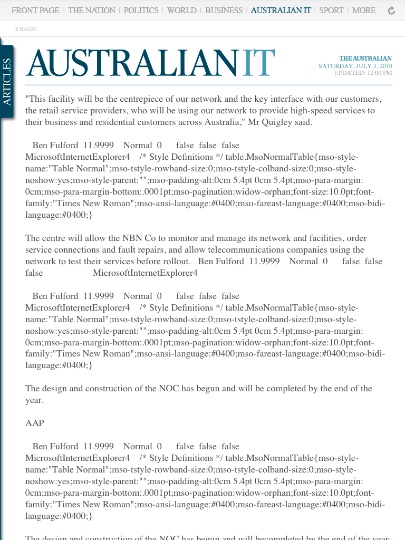 The Sydney Morning Herald launched this week with an astonishingly bad tablet version of the paper - basically a PDF of the whole thing, weighing in at 30MB to download or more, hard to navigate, slow and just plain wrong for the platform.